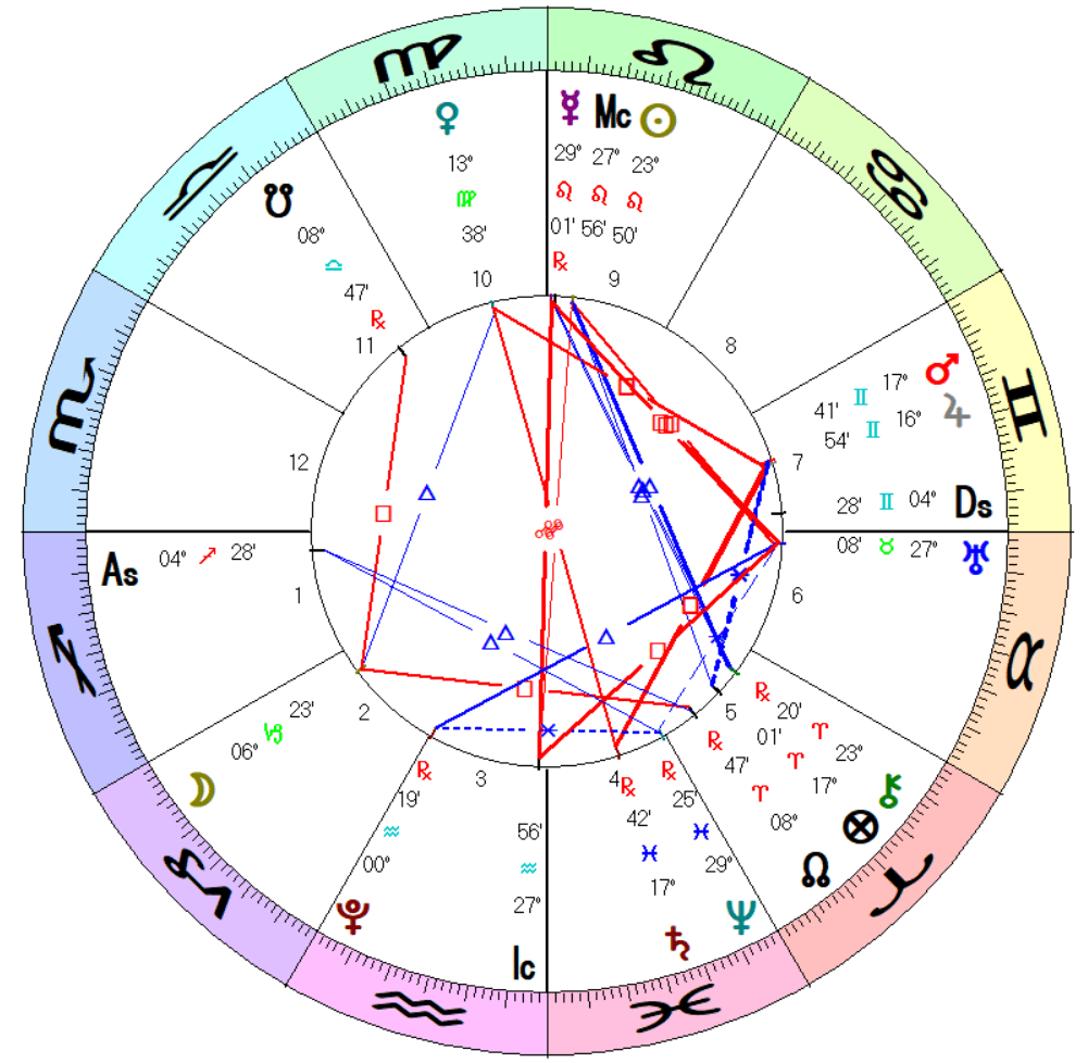- House 2 di Capricorn dengan ruler house 2 di house 4; House 8 di Cancer dengan ruler house 8 di house 2.